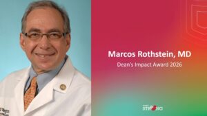 Marcos Rothstein, MD, Professor of Medicine in the Division of Nephrology, has been named a 2026 recipient of the Dean’s Impact Award.  Established in 2023, the annual award recognizes individuals whose extraordinary service and leadership strengthen the clinical care, education, and research missions of WashU Medicine. The theme of this year’s award, “Honoring the Focused […]